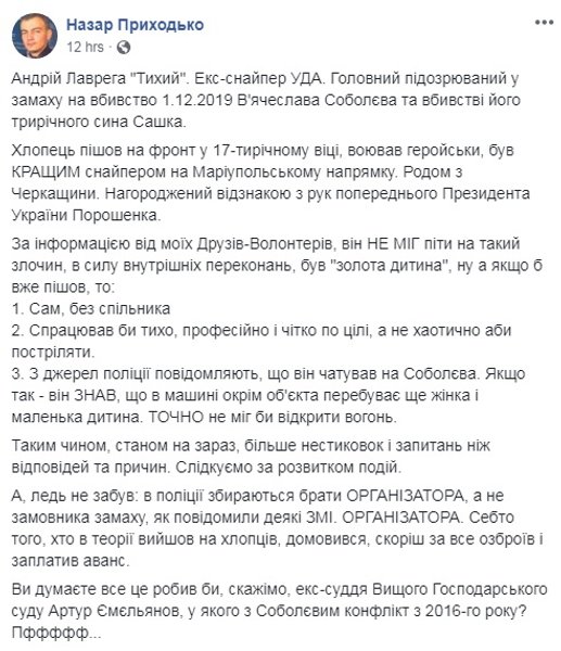 Пока полиция продолжает расследовать дело об убийстве трехлетнего Александра, который погиб от пули, предназначавшейся его отцу – депутату и ресторатору Вячеславу Соболеву, в соцсетях обсуждают личность двух подозреваемых, воевавших на стороне Украины в т.н. Добровольческой армии. Не остается без внимания и неприятная, но уже ставшей очевидной закономерность — все чаще исполнителями резонансных преступлений становятся ветераны русско-украинской войны.