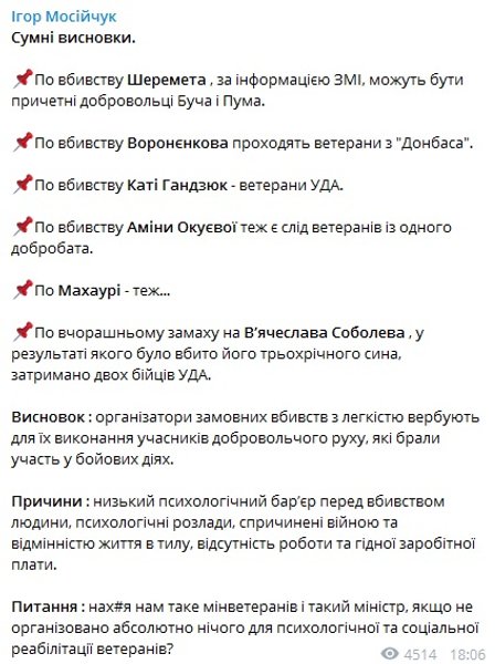 Незамеченным не остался и тот факт, что в подавляющем большинстве случаев в преступлениях оказываются замешанными ветераны из добровольческих подразделений, но не ВСУ.