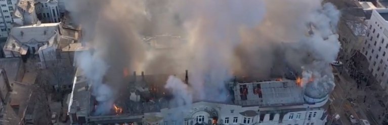 ВажноПоявилось видео пожара в одесском колледже с высоты птичьего полета