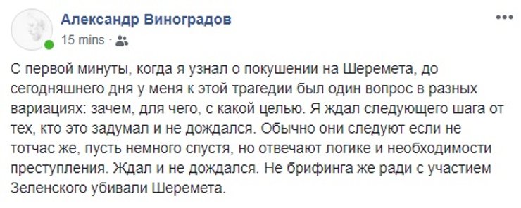 Недоумение вызвал и мотив. Несомненно, Павел Шеремет был известной медиа-персоной, но не настолько известной, чтобы его гибель могла дестабилизировать ситуацию в целой Украине, где большинство, все-таки, не знали о его существовании.