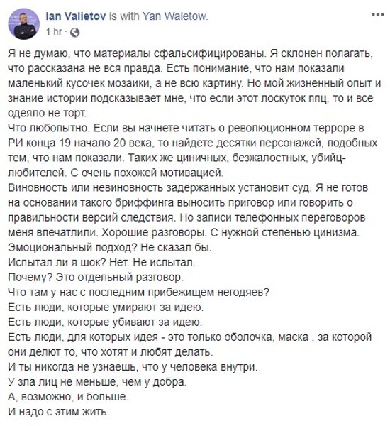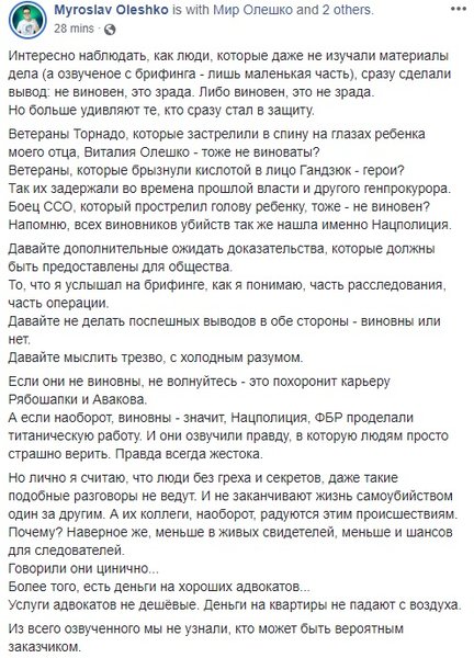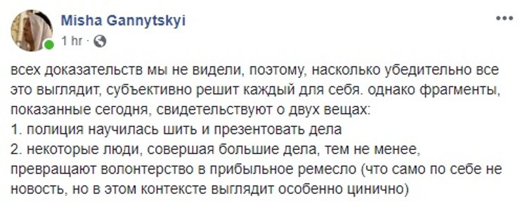 Другие блогеры посчитали, что показанного Нацполицией вполне достаточно. Впрочем, в любом случае в Украине никто не отменял презумпцию невиновности и, если дело дойдет до суда, то прокурорам придется доказывать каждый этап любовно выстроенной полицейской версии.