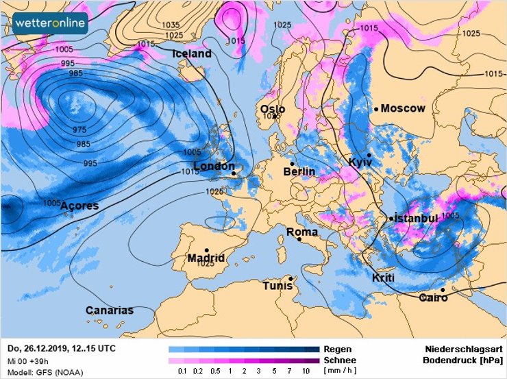 26-го декабря пройдут дожди в большинстве областей Украины, на Западе преобладать мокрый снег, в южной части существенные осадки маловероятны.