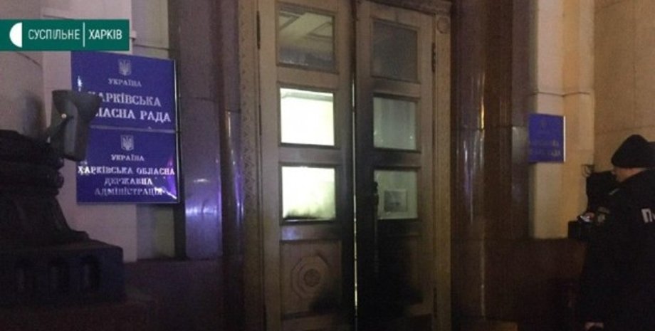 В Харькове задержали мужчину, который поздно вечером поджег вход в здание облгосадминистрации.