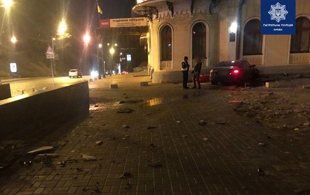 В центре украинской столицы на Владимирском спуске водитель иномарки утром 9 января наехал на гранитный выступ подземного перехода, а затем врезался в здание Национальной филармонии Украины.