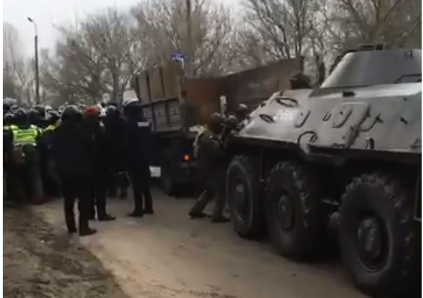 Эвакуация из Уханя: полиция использует тяжелую технику, чтобы разогнать протесты в Новых Санжарах