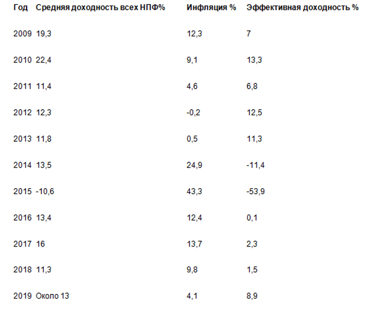 По словам Бондаренко, за последние 10 лет средняя доходность украинских НПФ почти всегда превышала инфляцию. Исключение – супекризисные 2014-15 годы.