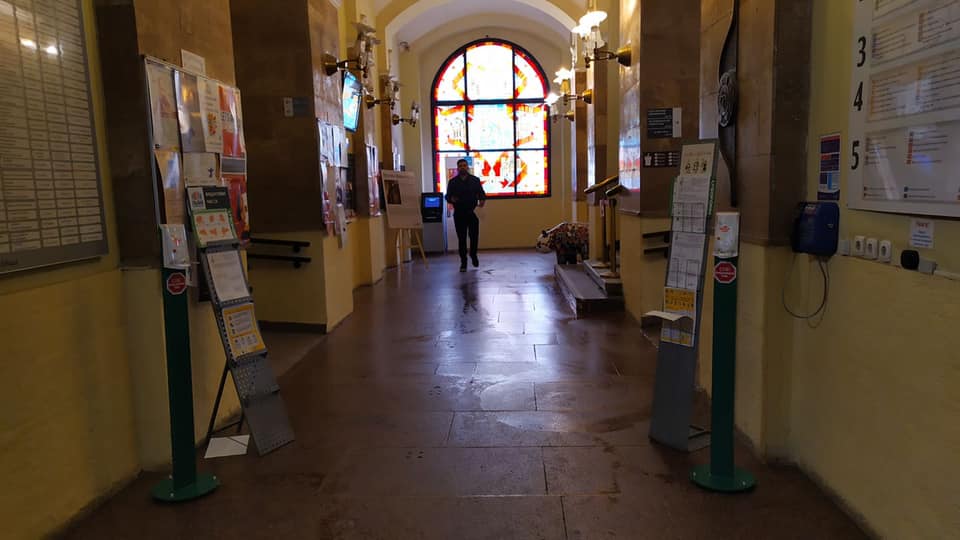 Во Львовском горсовете установили антисептики и развесили информационные плакаты по коронавирусу.