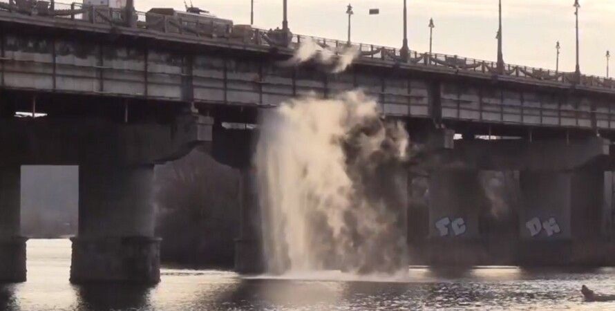 Водопад из кипятка: на мосту Патона в Киеве прорвало теплотрассу