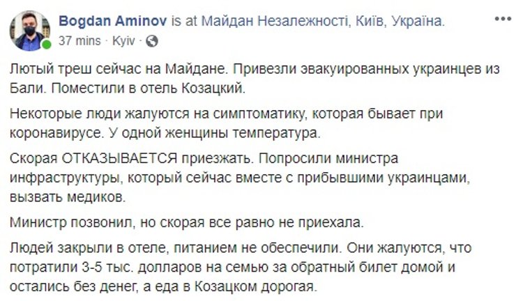 К двум следующим рейсам с Бали через столицу Катара – Доху, в аэропорту подготовились куда основательнее. Этой ночью в "Борисполь" сразу прибыла Нацгвардия и полиция, а туристов заперли в самолетах, не выпуская их, пока они не подпишут добровольное согласие на обсервацию. Бесплатную – в отеле "Казацкий" на Майдане Незалежности в Киеве, или же на платную в Пуще-Водице.