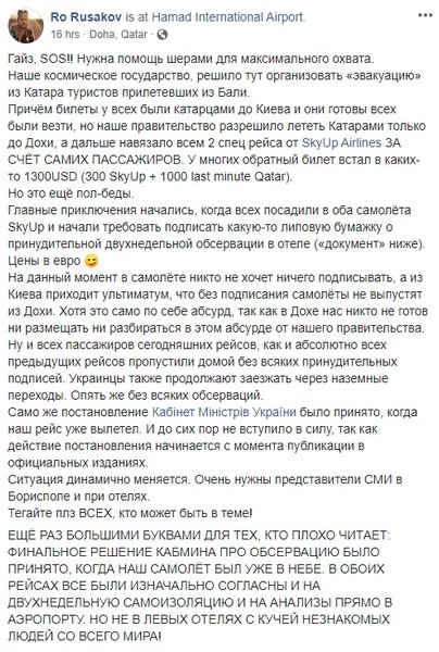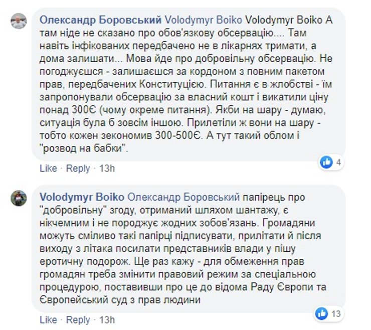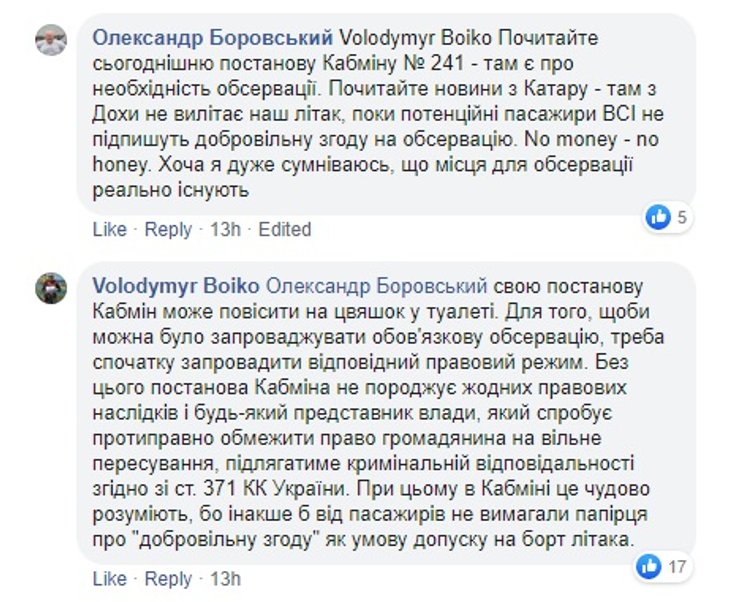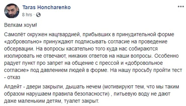 Однако по прилету стало понятно, что договориться с прибывшими не удалось и что-то опять пошло не так. Камнем преткновения, в частности, стало постановление Кабмина, спешно принятое 29 марта. Согласно которому все новоприбывшие должны будут отправиться на принудительную обсервацию.