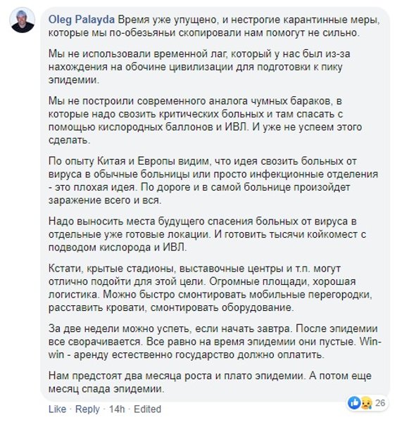 И хотя это не исключительно украинская практика — наказывать медиков, которые осмелились вымести сор из избы — об аналогичных случаях рассказывают и британские врачи — сравнение будет уместно не сейчас, а на пике распространения заболевания, которое наступит через несколько недель.
