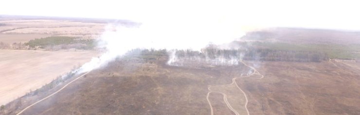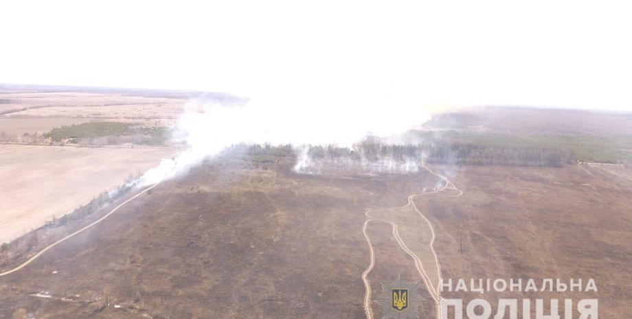 "Другой случай – это возгорание травяного настила в Иванковском районе. Потом огонь перекинулся дальше, на территорию Котовского лесничества, которое находится уже в зоне отчуждения. Там было уничтожено огнем 5 га сухой травы", – сообщили в полиции.