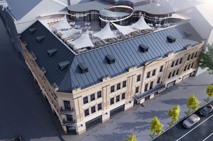 Будівля залишиться триповерховою, повністю відновляться фасади – мінімалістичні, з цегляним обрамленням вікон та відкритими кутовими балконами, з історичною металічною ковкою. На думку керівника відділу наукових досліджень компанії "Реставратори Старого Києва" Віхарєвої Марії, проєкт відновлення будівлі зроблено згідно найкращих світових стандартів, з повагою до історичної частини міста, зберігаючи фасади та надаючи нові сучасні функції та рішення для будівлі загалом. Наприклад, замість покатої покрівлі буде створено великий оглядовий майданчик, де за планами власника працюватимуть кафе і ресторани. Запланована невелика підземна парковка на 60 місць.
