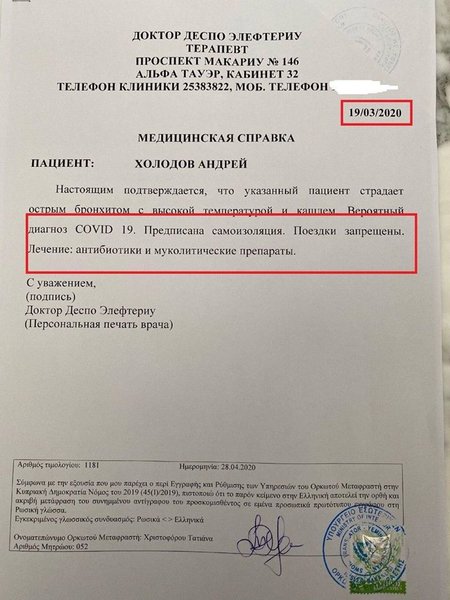 Нардеп Андрей Холодов ("Слуга народа") заявил, что улетел на Кипр перед закрытием границ из-за запланированной там операции для сына, а позже вернуться в Украину вовремя не смог из-за болезни. Так он в Facebook ответил на расследование журналистов программы "Схемы".