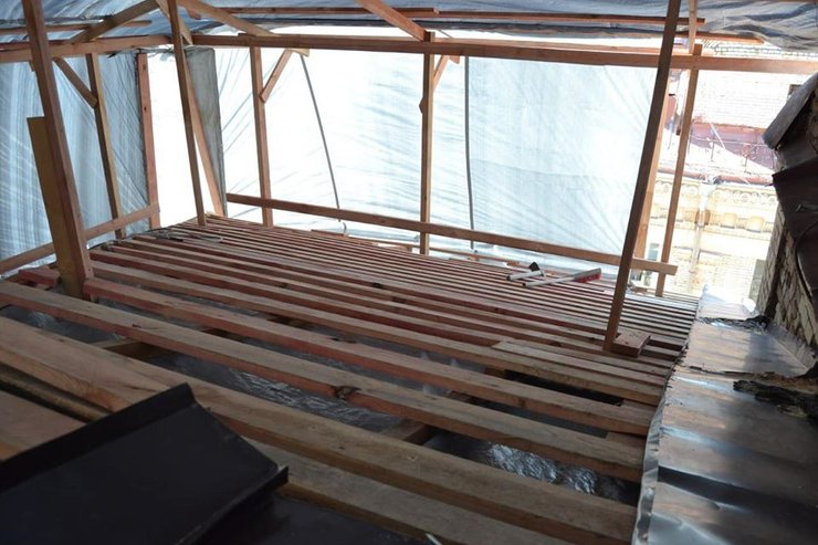 Ткаченко также сообщает, что конструкция на крыше дома временная, там идет лишь ремонт кровли с утеплением.