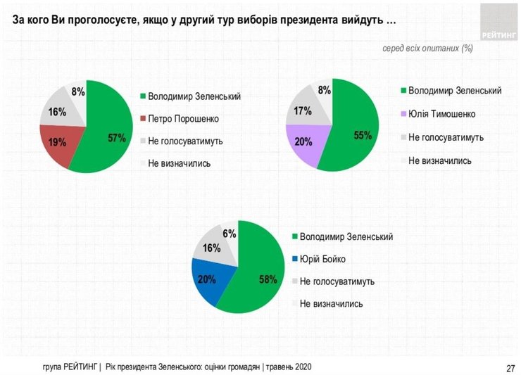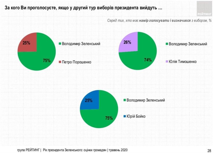 Зеленский снова получил бы 75% голосов во втором туре выборов, — опрос Рейтинга