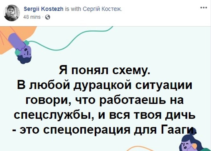 Некоторые блогеры еще до заявления Гордона и замгенпрокурора строили предположения, что это какой-то сложный план спецслужб. Ведь и ранее СБУ утверждала, что Гиркин служил в Главном разведывательном управлении Генштаба вооруженных сил Российской Федерации, но, правда, сам Гиркин эту информацию опровергал. И если Гиркин и правда связан со спецслужбами, то стоит ждать известий о его "ликвидации".