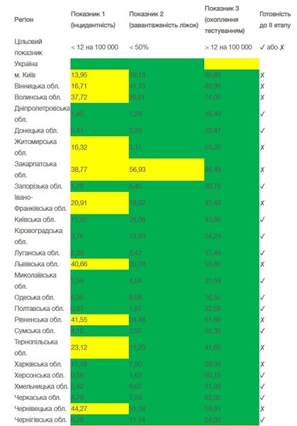 Минздрав представил обновленные данные по готовности регионов Украины к смягчению карантина. По состоянию на утро 20 июня не готовы к ослаблению карантинных ограничений 9 областей и столица (19 июня в список также входила Черновицкая область).