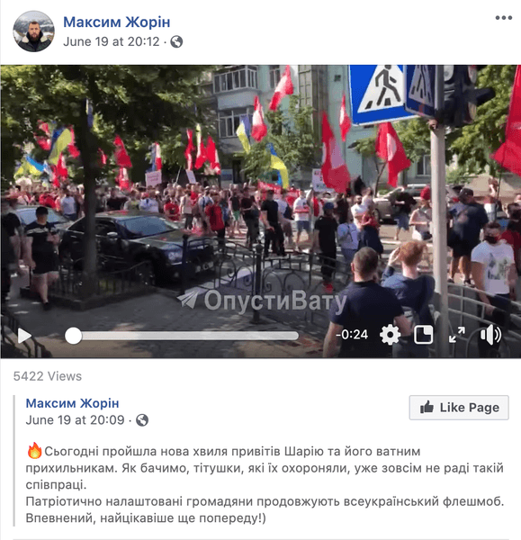 Максим Жорин, руководитель центрального штаба Нацкорпуса, также публиковал в своем Фейсбуке посты о "новой волне приветов" сторонникам Шария.