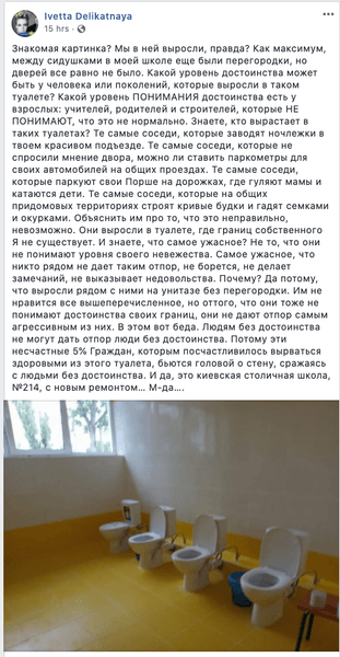 В школе №214 в Киеве 30 июня состоялось ЗНО. Благодаря этому выяснилось, что туалет в школе не имеет кабинок или каких-либо перегородок