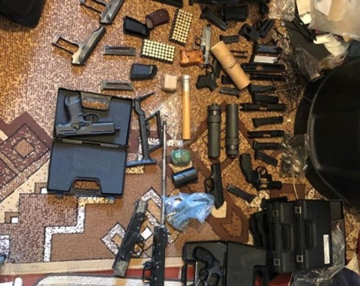 На данный момент изъято 8 пистолетов, ружье, 15 магазинов, 6 глушителей, 165 патронов, свето-шумовые гранаты и другие элементы оружия.