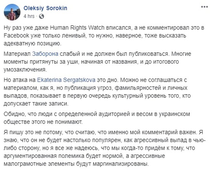 При этом многие пользователи отметили, что вне зависимости от качества материалов, публикуемых на "Забороне", организовывать онлайн-травлю журналистов нельзя.