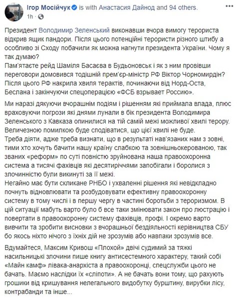 Сегодня Максиму Кривошу должны избрать меру пресечения. Полиция открыла уголовное производство по факту захвата заложников в Луцке, а СБУ – по статье о "террористическом акте". Журналисты ожидают, что он все же расскажет почему решил захватить автобус и кто за этим стоял кроме него, так как уже в Харькове был пойман мужчина, называемый его сообщником, который согласился сотрудничать со следствием. Как отразится захват заложников на Арсене Авакове - неясно, он хоть и выглядит героем, но в свете последних событий его будут подозревать в двойной игре. Другой вопрос, насколько это повлияет на его статус, министерское кресло и репутацию в целом (скорее всего, никак). Президент Зеленский как всегда оказался меж двух огней - одни хвалят его за человечность и близость к народу, другие критикуют, что долго тянул и пошел на уступки террористу, то есть не спрогнозировал, какое влияение это окажет на будущее его в частности и Украины в целом. Но одно теракт в Луцке показал точно - нет региона в Украине, который мог бы считаться спокойным и безопасным, под угрозой - любой гражданин Украины, а оружия, благодаря войне на востоке Украины - предостаточно и доступно оно любому, кто задастся целую его приобрести.