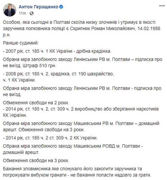 Полтавский инцидент: все, что известно о захвате полицейского в заложники
