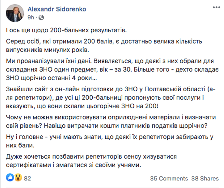 Украинские репетиторы сдают ВНО для красивых сертификатов и тем самым портят абитуриентам рейтинг. Об этом у себя в Facebook написал директор Харьковского регионального центра оценивая качества образования Александр Сидоренко. По его словам, подозрительно большое количество учасников ВНО возрастом "за 30" сдают одни и те же предметы 4 года подряд.