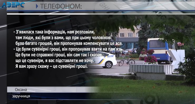 Опрошенные телеканалом заложники сообщили, что у Кривоша были в сумке доллары и он предложил пассажирам и водителю разделить их. Сообщается, что прямо на месте выяснилось, что деньги были ненастоящие, а сувенирные. Сообщается также, что после задержания злоумышленника и эвакуации заложников купюры были разбросаны по салону.