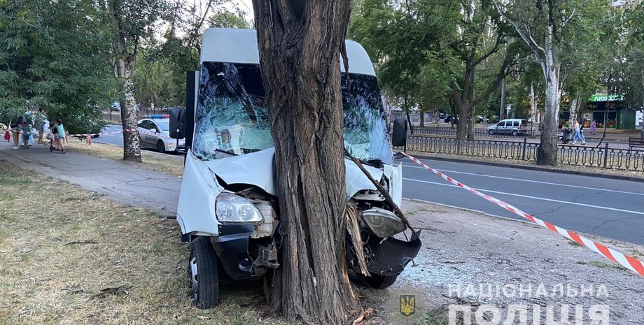 В Николаеве маршрутка влетела в дерево, 9 человек пострадали