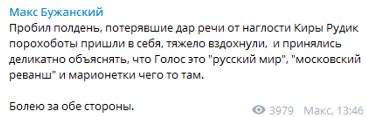 Напомним, в июле партия "Голос" заявила о своем переходе в оппозицию. "Мы поняли, что наш конструктив не приносит пользы. Власти не нужно помогать, ее нужно менять ... Партия "Голос" переходит в оппозицию к действующей власти", – заявила тогда Кира Рудык. Похоже, теперь "Голос", потерявший своего "голосистого" экс-руководителя, выбирает позицию "против всех".