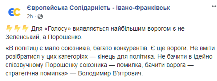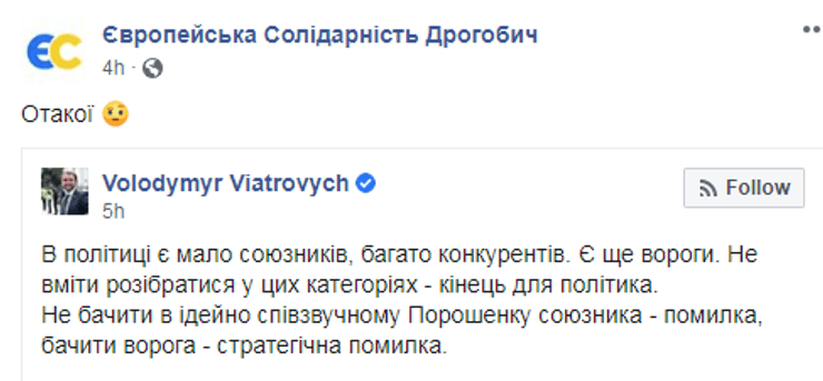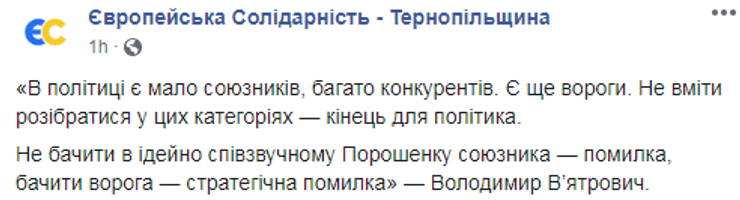 Слова Владимира Вятровича так понравились сразу трем региональным страницам ЕС, что они их даже репостнули.
