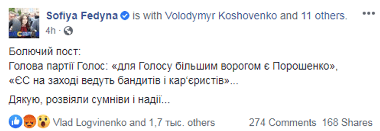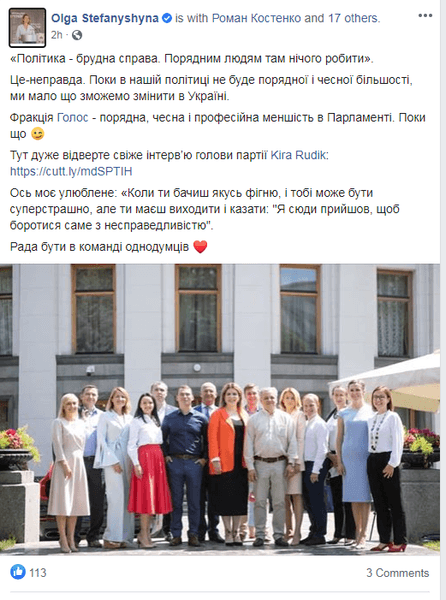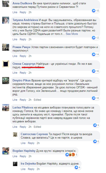 Естественно, своим интервью Кира Рудык поделилась у себя в Фейсбуке. В посте она предсказала, что вокруг материала поднимется большой шум.Это действительно произошло моментально – в комментариях у политика тут же поднялась волна негатива.