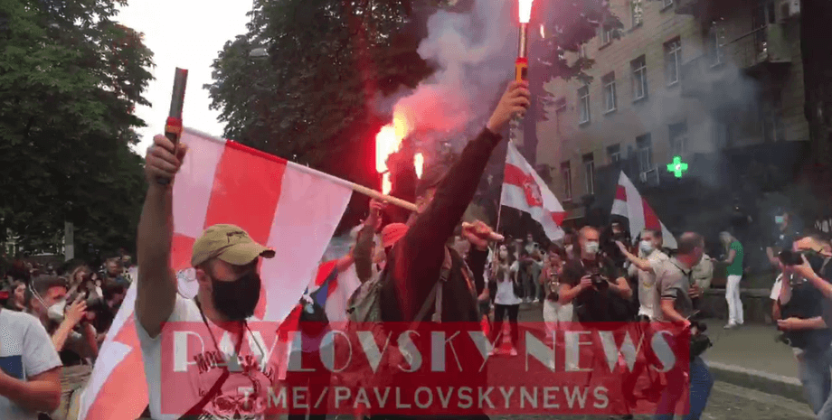 Активисты пришли под посольство Беларуси в Киеве: файеры и стычки с полицией
