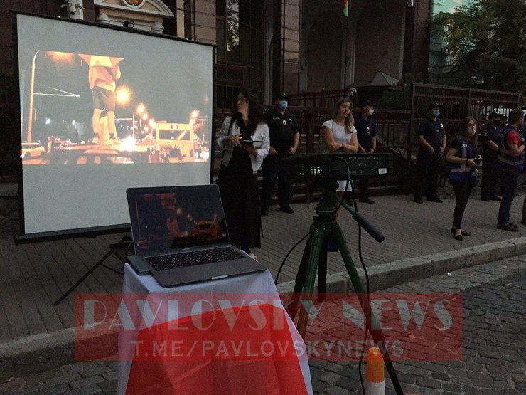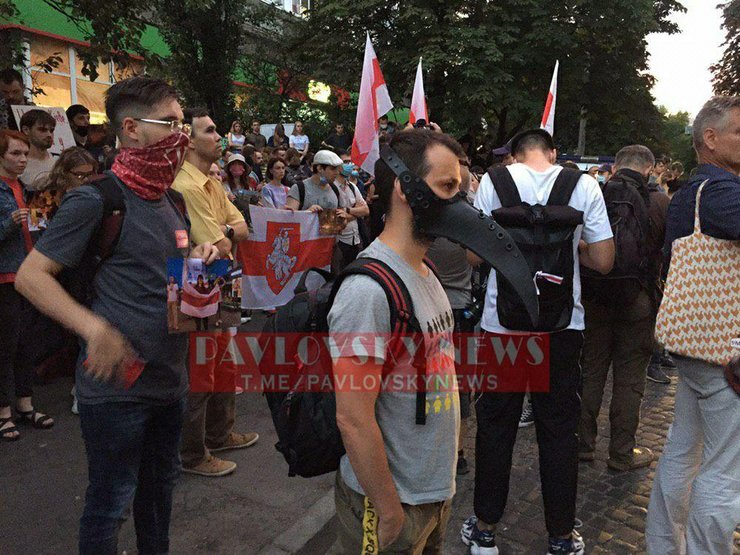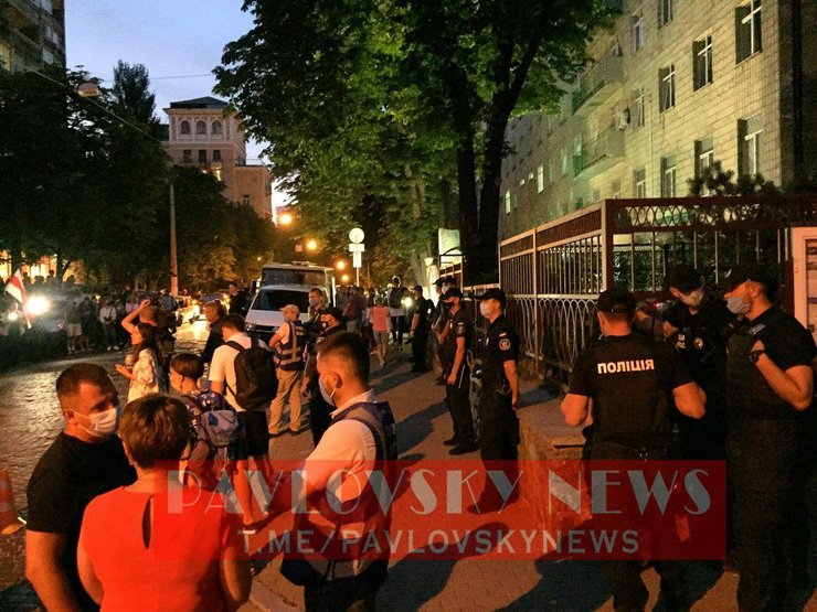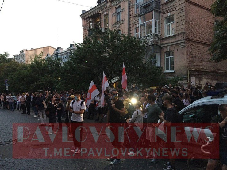 Как видно на видео и фотографиях, в репортаже Telegram-канала PavlovskyNews, под посольством по улице Коцюбинського, 3 собралось пару сотен человек.