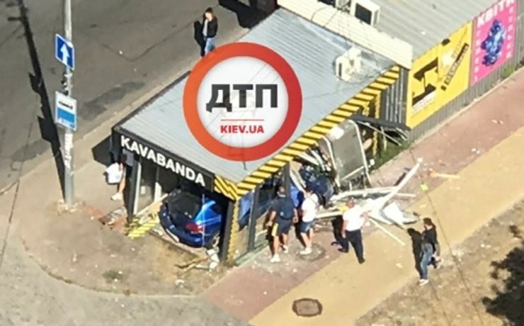 В Киеве иномарка влетела в кофейню на остановке: есть пострадавшие