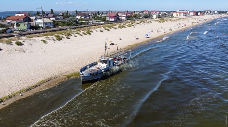 В Затоке на пляж выбросило рыболовецкое судно: возле корабля пахнет соляркой