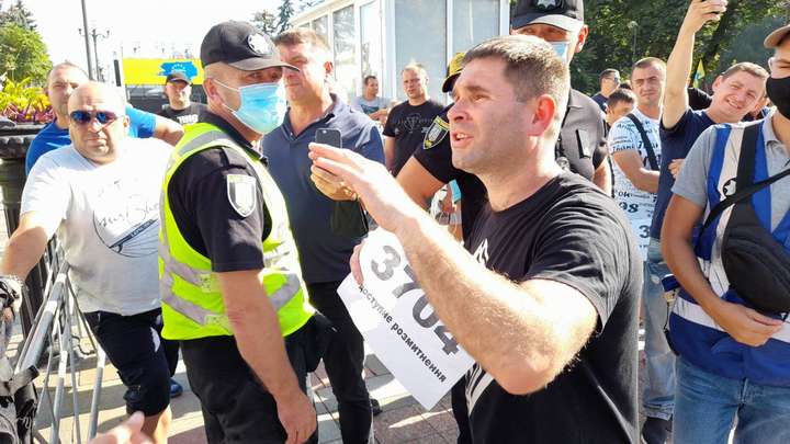 "Сколько можно тянуть с принятием закона о доступной растаможке? Сколько можно играть с терпением простых людей, которым практически каждый день грозят штрафы 170 тысяч гривен и конфискация автомобиля?", – звучит со сцены под Радой.