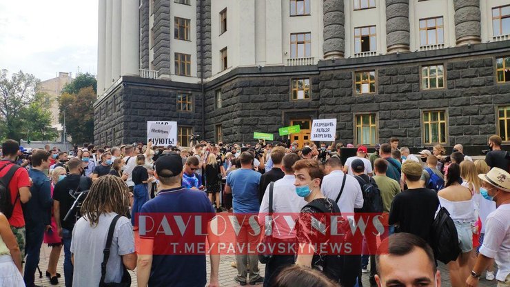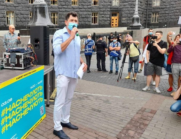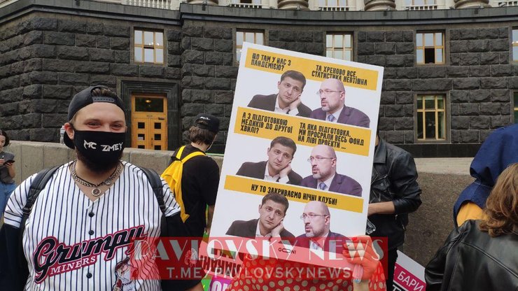 Под зданием Кабинета министров Украины сегодня, 3 сентября, с 11 утра идет митинг работников развлекательной индустрии, которые отстаивают право вести концертную деятельность в условиях карантина.