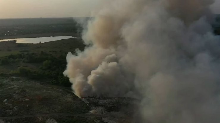 Мусорный ветер: под Полтавой горит городская свалка, полыхают два гектара