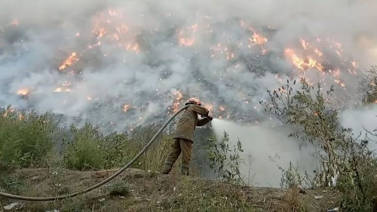 Свалка расположена в непостредственной близости от города вблизи села Макуховка и местные жители боятся, что огонь перекинется на город.