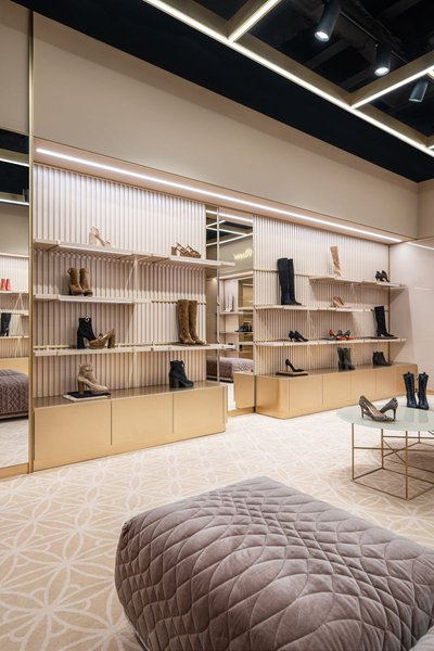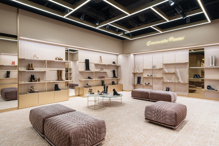 Интерьер shop-in-shop соответствует всем стандартам Gianvito Rossi — при его создании учитывался фирменный стиль и цветовые коды бренда, поэтому он идентичен европейским бутикам.