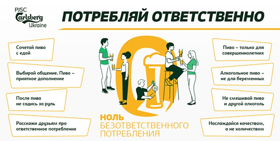 На протяжении пяти лет Carlsberg Ukraine приобщается к Всемирному дню ответственного потребления пива (Global Beer Responsibility Day), поощряя ответственное и умеренное потребление, которое базируется на простых принципах: