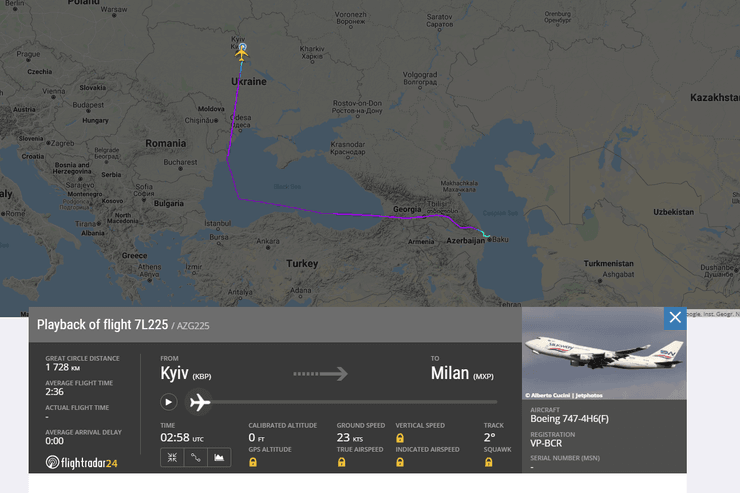 Грузовой самолет Азербайджана летел из Киева в Милан, но попал в Баку