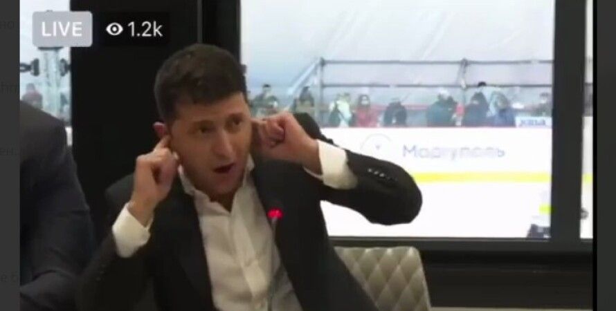 Глава государства Владимир Зеленский на встрече после открытия ледового стадиона Mariupol Ice Center в Мариуполе, попал в неловкую ситуацию, испугавшись громкого шума в зале.