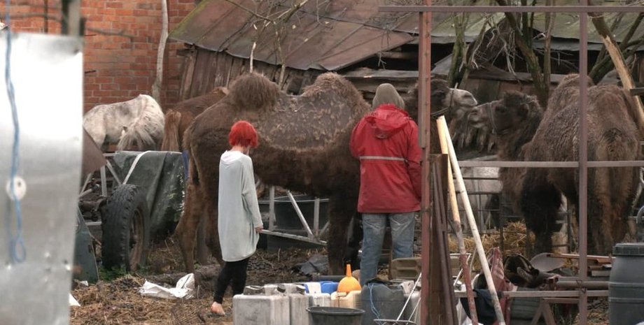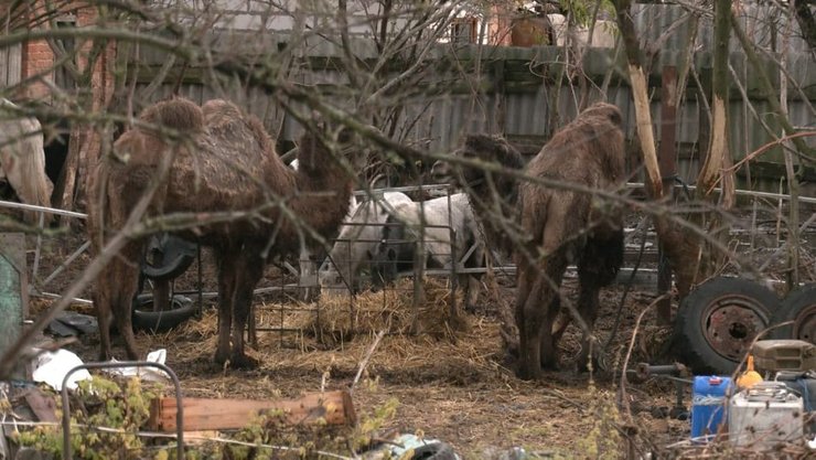 Отмечается, что двугорбых верблюдов держат на одной из ферм, но иногда выпускают погулять.