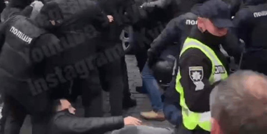 В Киеве на улице Грушевского проходит массовый протест владельцев "евроблях": произошла массовая драка с полицейскими. Об этом сообщает "Киев оперативный".