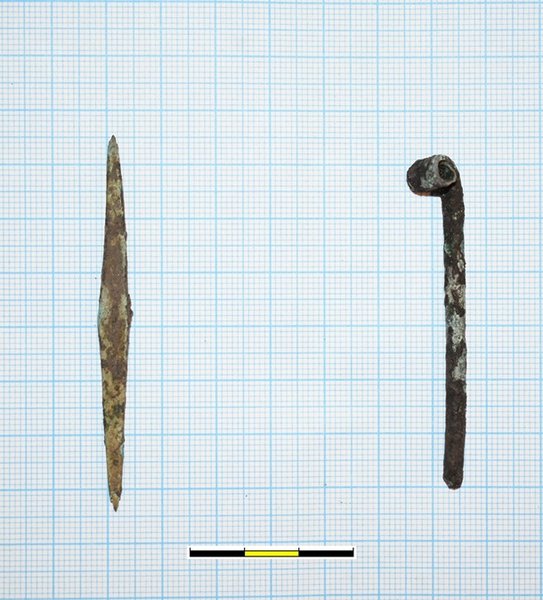 Также найдены артефакты чернолеесской культуры (позднебронзовый-раннежелезный период, ХІ-VII в. до н.э.). Найдены украшенные налепным валиком фрагменты керамики с проколами под венцом, а также бронзовые шпилька и проколка.