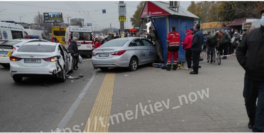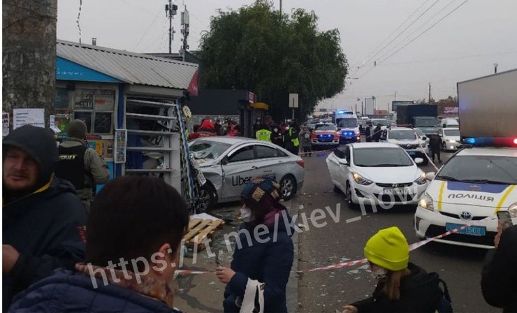 Утром 13 ноября в Киеве произошло ДТП. Легковой автомобиль Hyundai с наклейками такси Uber после столкновения с другим автомобилем вылетел на тротуар и врезался в остановку общественного транспорта, где находились люди. Об этом сообщил телеграм-канал "Киев Сейчас".
